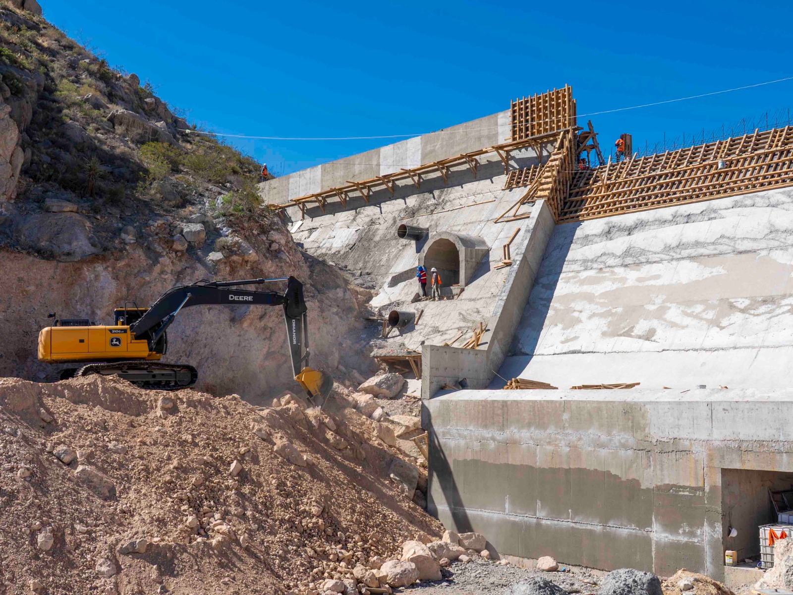 El ingeniero Cesar Triana, director de Obra de la JMAS, informó que la próxima semana se llevará a cabo el colado de concreto en una de las áreas más relevantes de la presa, estructura donde inicia la descarga del agua al alcanzar su nivel máximo de almacenamiento.