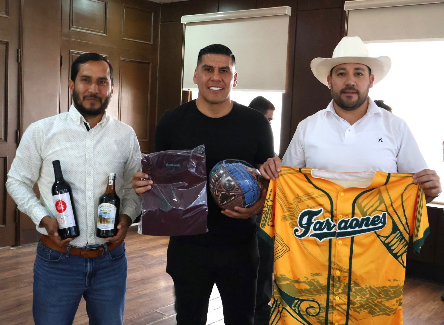 Durante su participación, el alcalde Roberto Lucero Galaz hizo entrega de presentes representativos de Casas Grandes y de la región a Carlos Salcido, en un gesto de reconocimiento a su trayectoria deportiva y a su labor actual como formador de niños y jóvenes en su escuela de fútbol, donde impulsa a nuevas generaciones que aspiran a convertirse en grandes deportistas. Cortesía