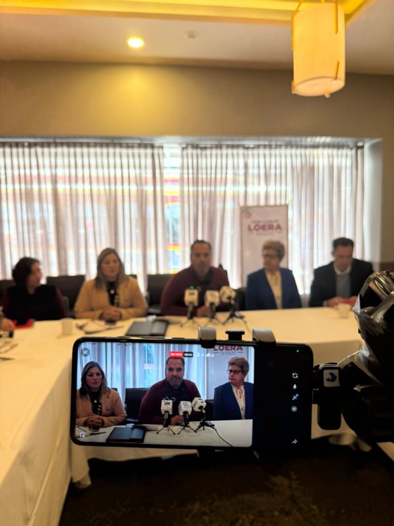 En la conferencia, Juan Carlos Loera estuvo acompañado del regidor Miguel Riggs y sus representantes en la ciudad de Chihuahua América Mayagoitia, Martha Medina, Alma Rojas y Efren González, quienes lo apoyan en gestiones para atender a la ciudadanía.