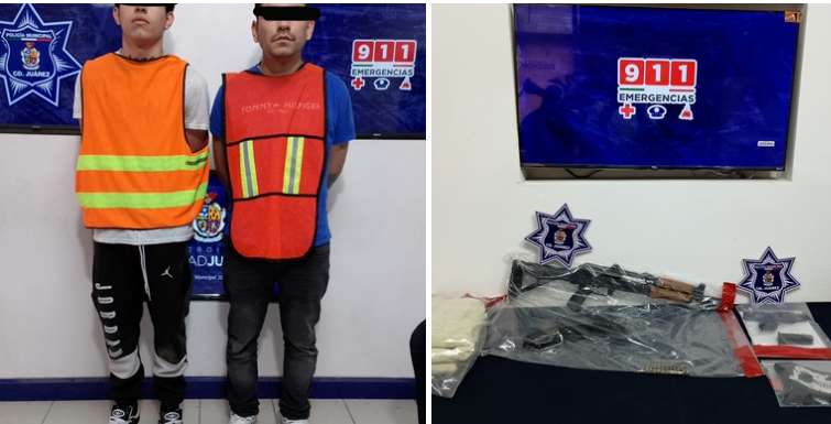 La Secretaria de Seguridad Pública Municipal detuvieron a César Antonio M. S. y Natanael Abisai V. L., por su presunta responsabilidad en el delito de homicidio y contra la ley federal de armas y explosivos.