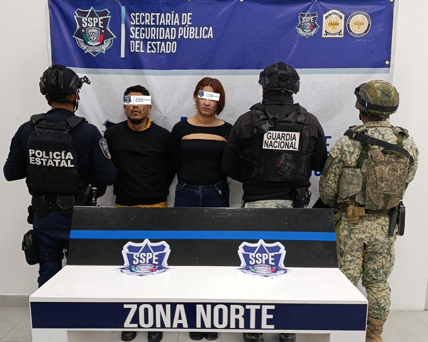 Las personas detenidas fueron identificadas como Ernesto G. R. y Alejandra Neftalí G. J., quienes, junto con el vehículo y el arma asegurada, fueron puestos a disposición de la autoridad correspondiente para el seguimiento de las investigaciones.