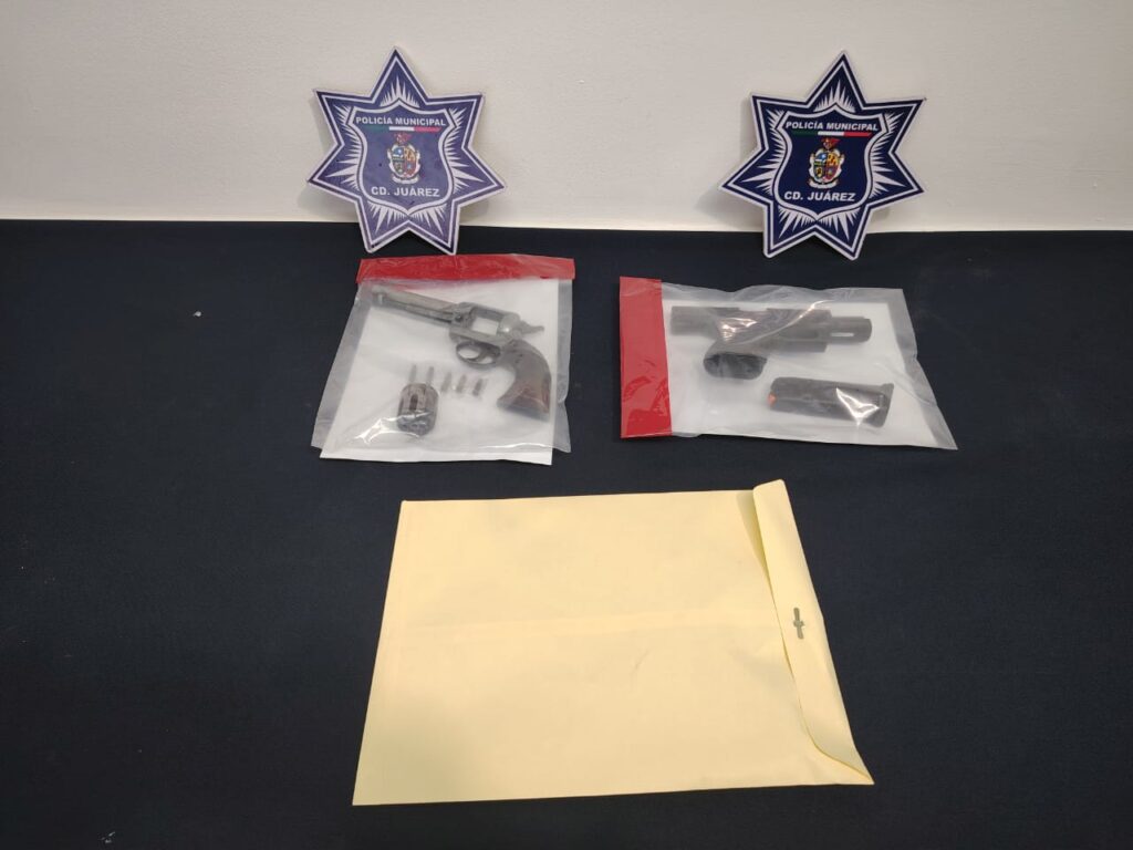 Tras realizarles una inspección preventiva les fueron aseguradas dos armas de fuego, una de ellas tipo revólver calibre 22 abastecida con cinco cartuchos útiles y una pistola calibre 9 milímetros desabastecida, además de un cuchillo con el cual lesionaron a la víctima, quedando en ese momento bajo detención.