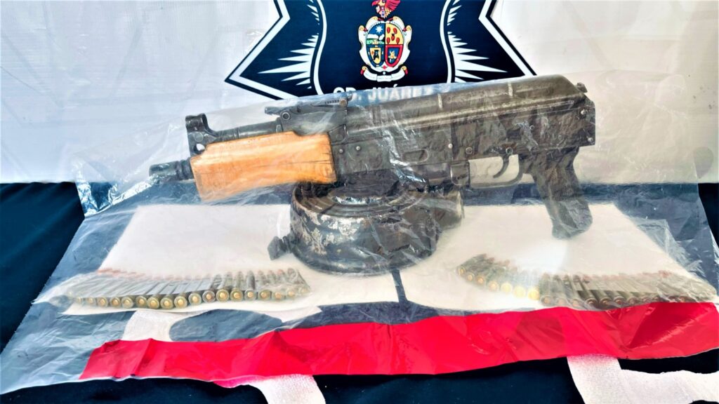 Motivo por el cual le marcaron el alto al conductor por protocolos de seguridad en el cruce de las calles Mar del Sur y bulevar Manuel Talamás Camandari, en el citado fraccionamiento y al realizarle una inspección preventiva se le localizó un fusil de asalto calibre 7.62×39, con un cargador de disco AK-47 abastecido con 41 cartuchos útiles, quedando dicho sujeto bajo detención y el fusil de asalto asegurado.
