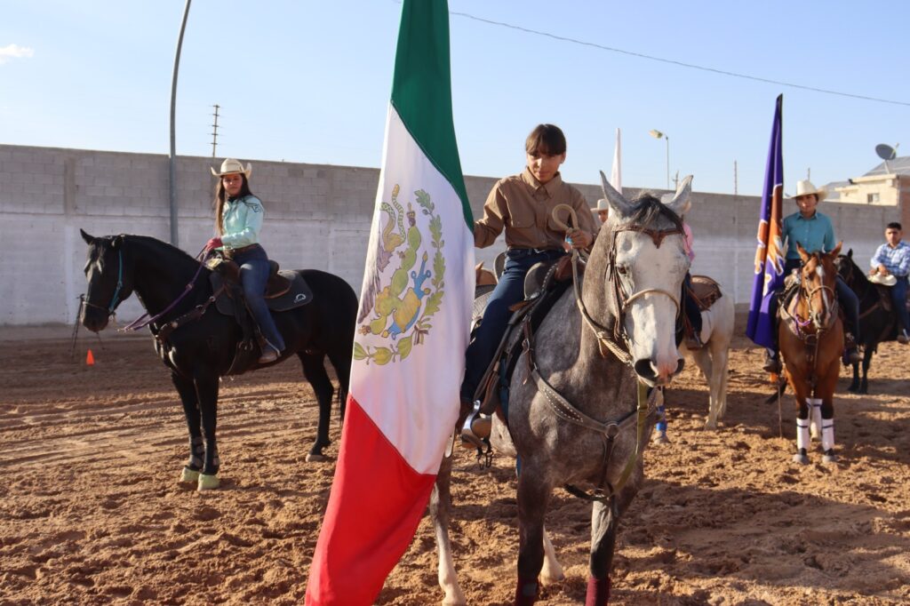 Además, se hizo el pase de bandera entre Paulina Luna a Zoé Villa actual campeona de carrera de barriles, en los pasados juegos Conade.