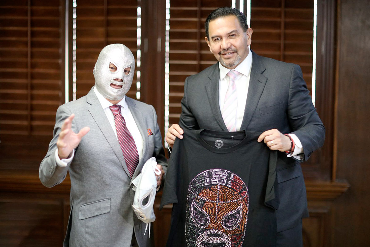 Durante su visita a Ciudad Juárez, el Hijo del Santo se reunió con el presidente municipal, Cruz Pérez Cuéllar, para…