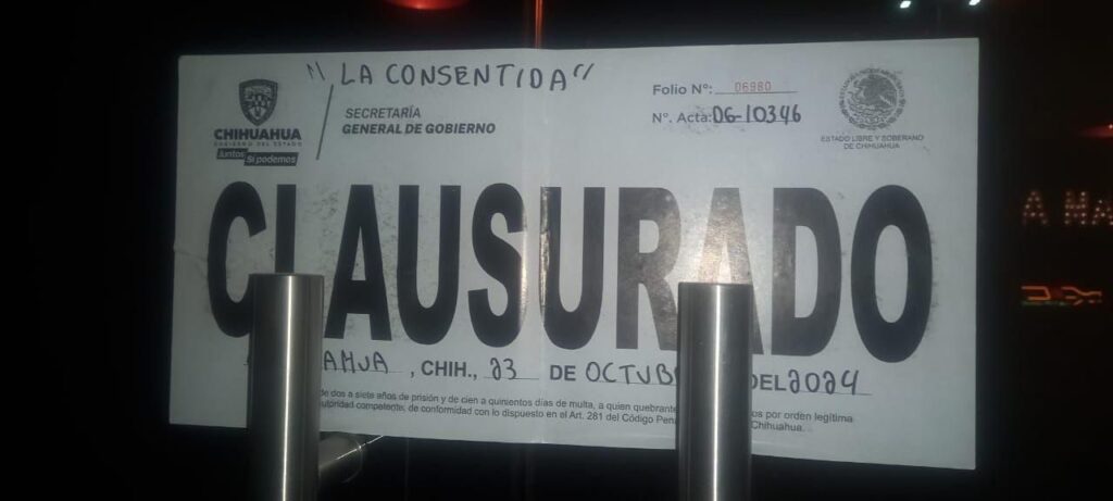 • Salón de baile “Prive” por operar fuera de horario y no dar facilidades (Chihuahua).