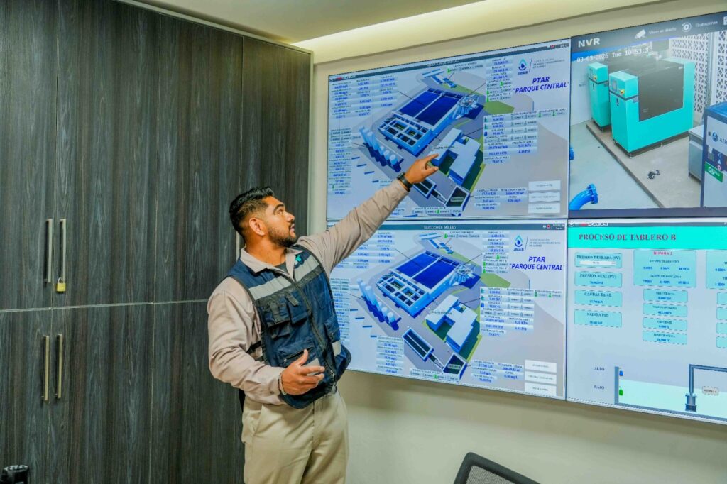 La planta opera con tratamiento biológico de última generación mediante microorganismos móviles, lo que permite una alta eficiencia en la eliminación de contaminantes y garantiza agua tratada de excelente calidad, a través de sistemas automatizados, el proceso es monitoreado de manera permanente, verificando niveles de cloro, sodio y demás parámetros de seguridad.