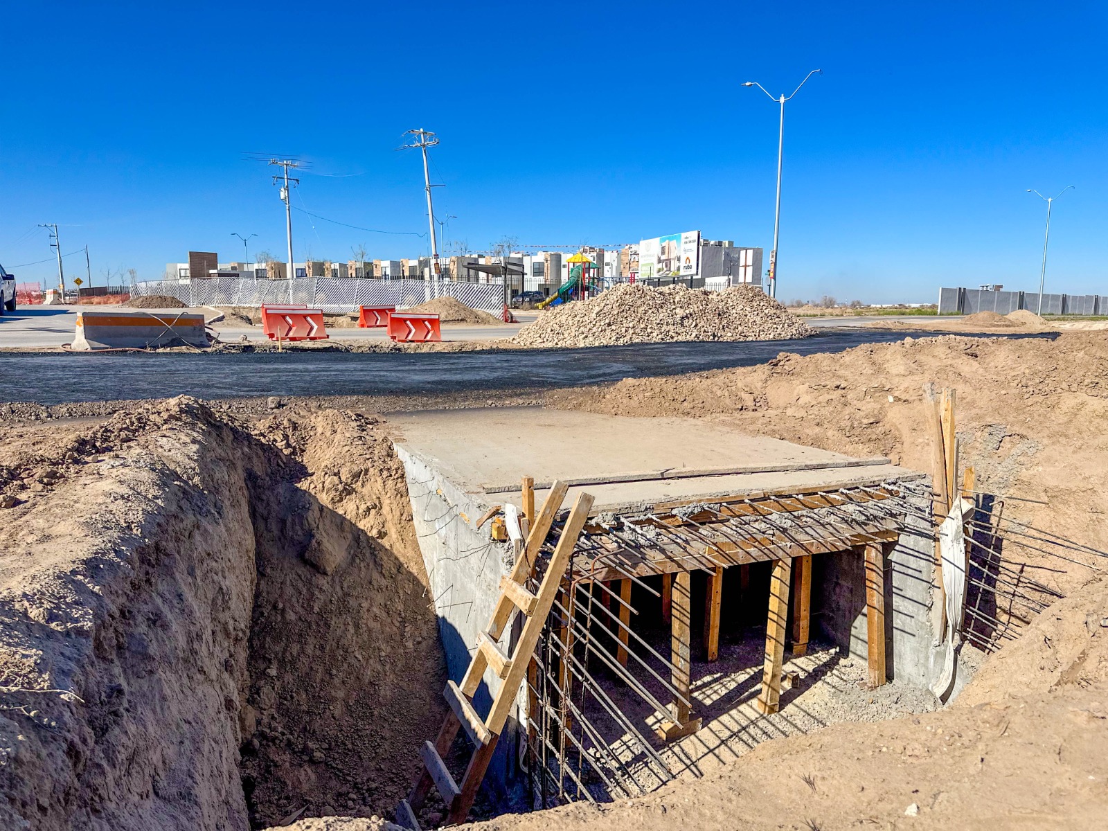 La Junta de Agua y Saneamiento de Juárez, construye un canal de agua tratada que conducirá el flujo desde la Planta Tratadora Sur hacia el dren interceptor de la Comisión Nacional del Agua (CONAGUA), con el objetivo de agilizar el desalojo de aguas residuales en la ciudad.