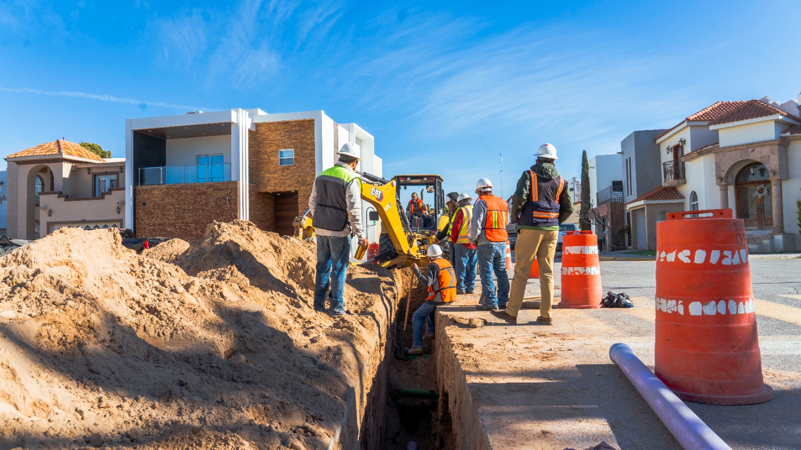 La Junta de Agua y Saneamiento de Juárez inició la instalación de tubería sanitaria y red de agua tratada en la calle Montebello, como parte de una estrategia para optimizar el uso de este recurso.
