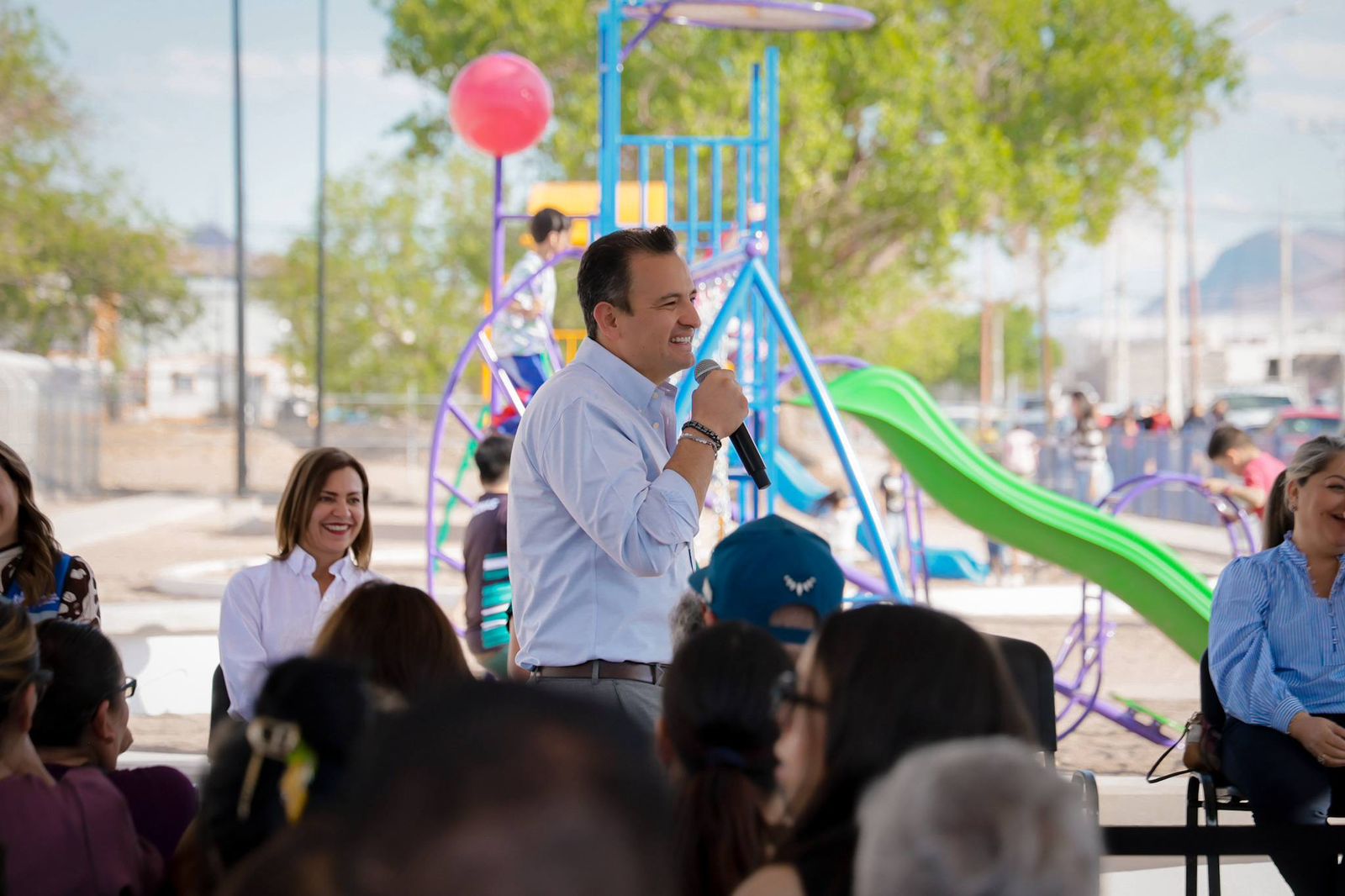 H. Ciudad de Chihuahua, Chih., a 15 de abril de 2026.- El alcalde Marco Bonilla, inauguró el Parque la Ribereña ubicado en la colonia Jardines de Sacramento, el cual fue construido gracias al Presupuesto Participativo y viene a brindar un espacio de encuentro, comodidad y de recreación en la zona para beneficio de cientos de familias.