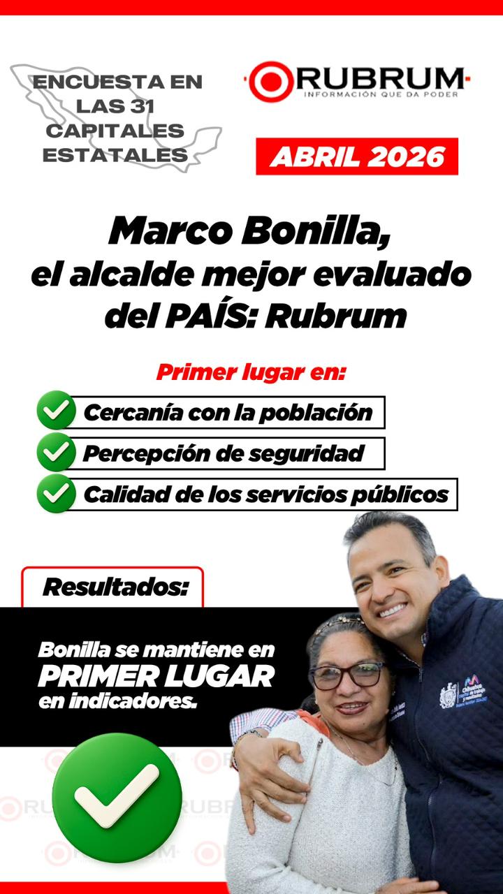 H. Ciudad de Chihuahua, Chihuahua., a 14 de abril de 2026.- El alcalde Marco Bonilla encabeza resultados nacionales al posicionar a Chihuahua Capital en el primer lugar del ranking de capitales estatales en percepción de seguridad, servicios públicos y desempeño de gobierno, de acuerdo con la más reciente encuesta de la casa consultora RUBRUM correspondiente a abril de 2026.