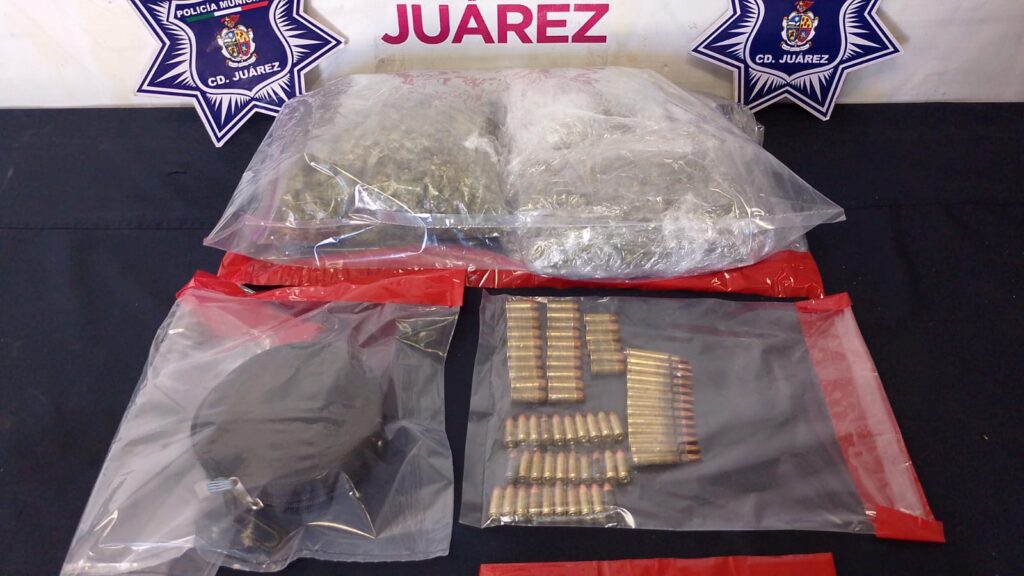 Razón por la cual le marcaron el alto a sus tripulantes en el cruce de las calles Rancho La Nutria y Rancho Malpaso, en la citada colonia, donde al realizarles una inspección preventiva les localizaron en el interior del vehículo tres envoltorios de plástico con marihuana con un peso aproximado de 994 gramos y un estuche negro con 26 cartuchos útiles calibre .45, 30 cartuchos calibre 9 milímetros y 13 cartuchos calibre .223.