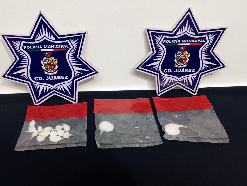 Motivo por el cual fueron abordados por protocolos de seguridad en el cruce de las calles Valle de Papigochi y Salvarcar, de la colonia en mención, en donde al realizarles una inspección preventiva por protocolos de seguridad se les localizaron 15 envoltorios con cristal con un peso de 15 gramos.
