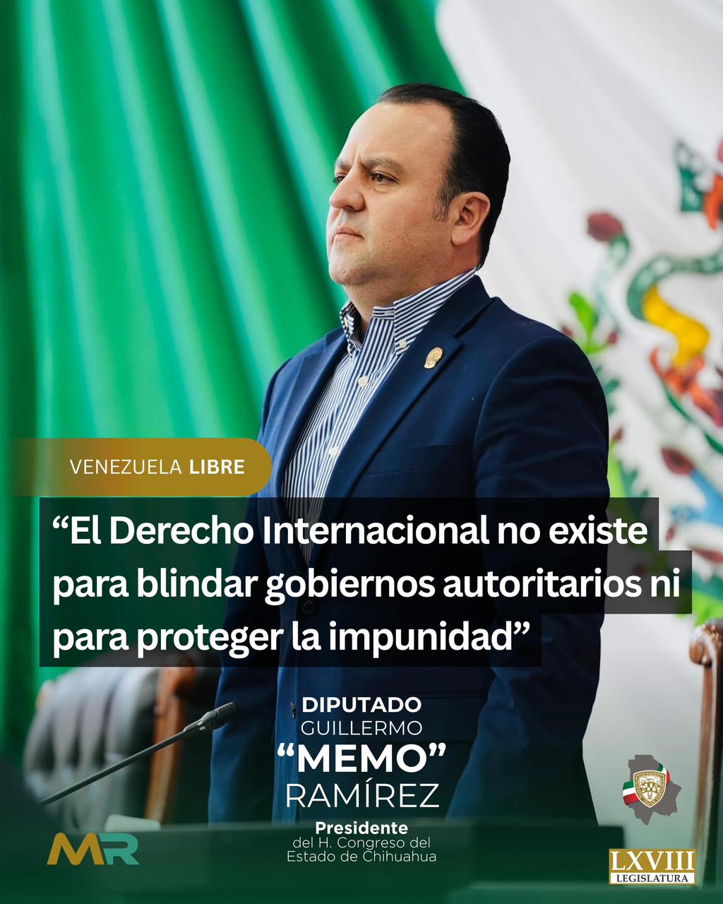 El diputado Guillermo Ramírez, presidente del H. Congreso del Estado, emitió una declaración en la que estableció una postura clara y firme desde la perspectiva del derecho internacional frente a la situación que enfrenta Nicolás Maduro.