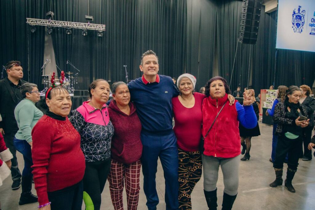 Chihuahua, Chih., a 18 de diciembre de 2024.- El alcalde Marco Bonilla, festejó a más de 3 mil 500 adultos mayores y 160 Club del Abuelo de la ciudad, con una posada que estuvo amenizada por el grupo musical Los Nonoava, y que contó con comida, baile y una rifa, a fin de compartir la alegría de las fiestas navideñas.