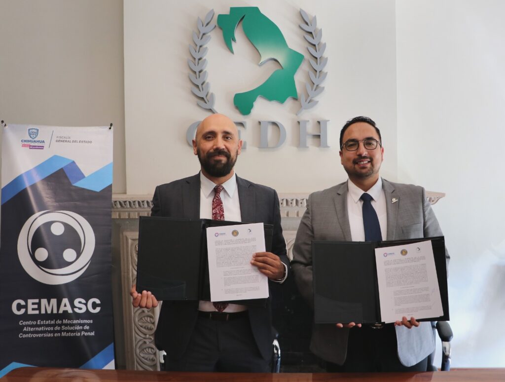 Con el fin de ofrecer a la ciudadanía mecanismos alternativos de solución de conflictos a través de la mediación y la conciliación, la Comisión Estatal de los Derechos Humanos de Chihuahua (CEDH) firmó un convenio de colaboración con el Centro Estatal de Mecanismos Alternativos de Solución de Controversias en Materia Penal, perteneciente a la Fiscalía General del Estado.