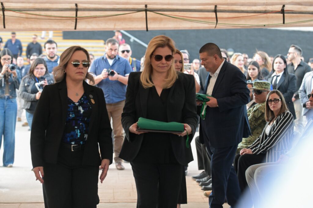 La gobernadora Maru Campos encabezó la ceremonia en que se rindieron honores a los elementos de la Agencia Estatal de Investigación (AEI), que fallecieron en un accidente automovilístico ocurrido el pasado fin de semana.