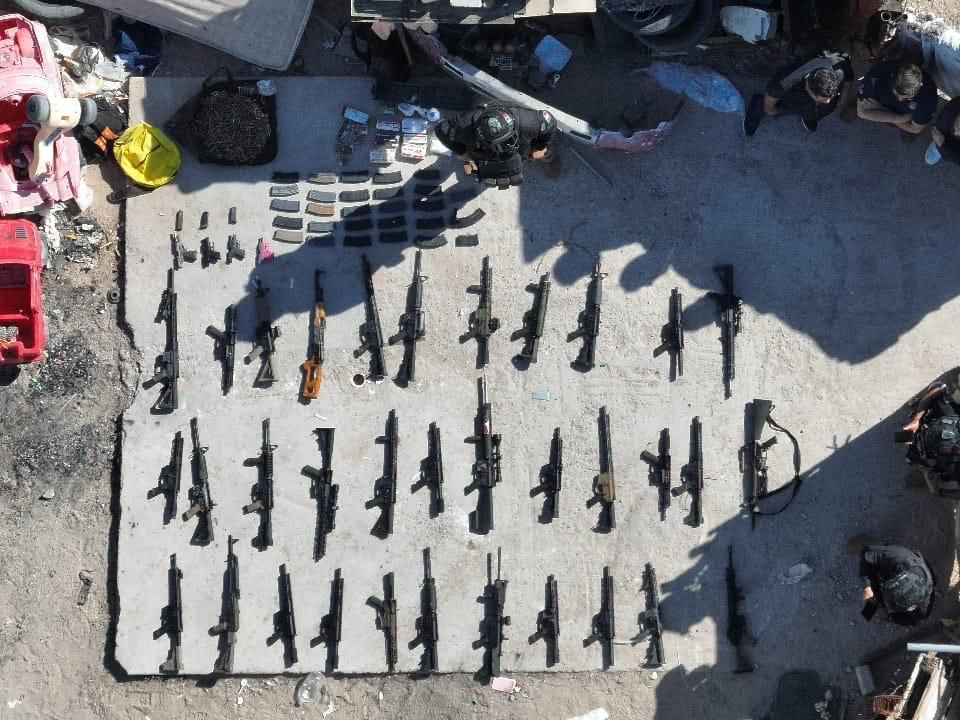 Los hechos se registraron en una vivienda ubicada en el cruce de Diamante y Héroes de Nacozari, donde los agentes tuvieron a la vista a un hombre armado que intentó ingresar al inmueble. En el interior se encontraron más personas armadas, así como una habitación adaptada para almacenar arsenal.