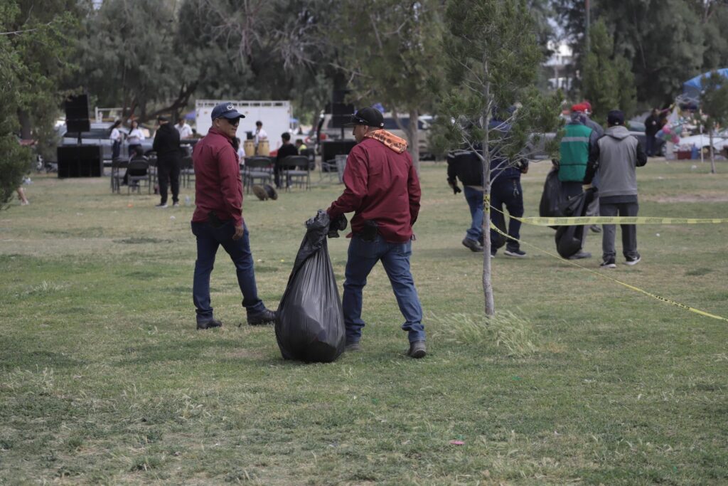 ¡Equipo en acción! 50 compañeros de cuadrilla recorren el parque permanentemente para vaciar tambos y levantar basura.