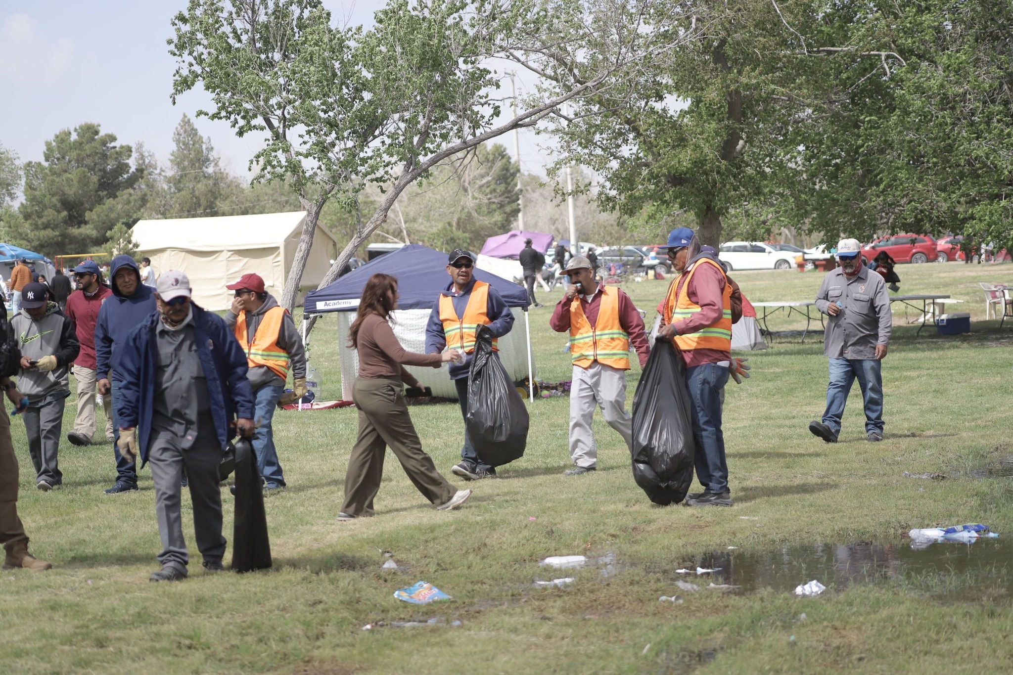 ¡Equipo en acción! 50 compañeros de cuadrilla recorren el parque permanentemente para vaciar tambos y levantar basura.