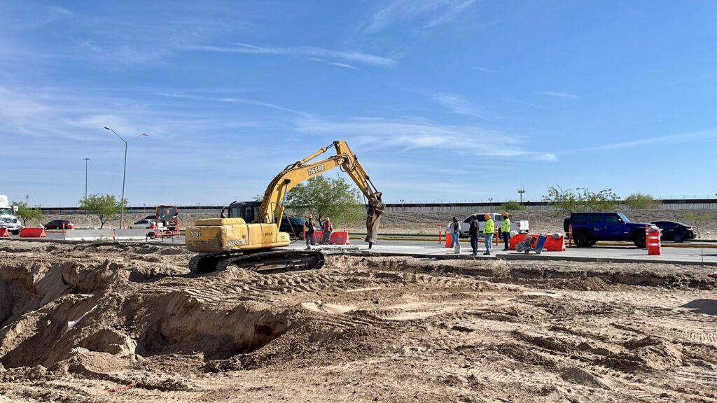Cd. Juárez, Chih., a 28 y 29 de marzo 2026 La Junta de Agua y Saneamiento de Juárez trabaja en la conexión del nuevo colector Cuatro Siglos con la red existe, cerrando temporalmente un carril en la vialidad.