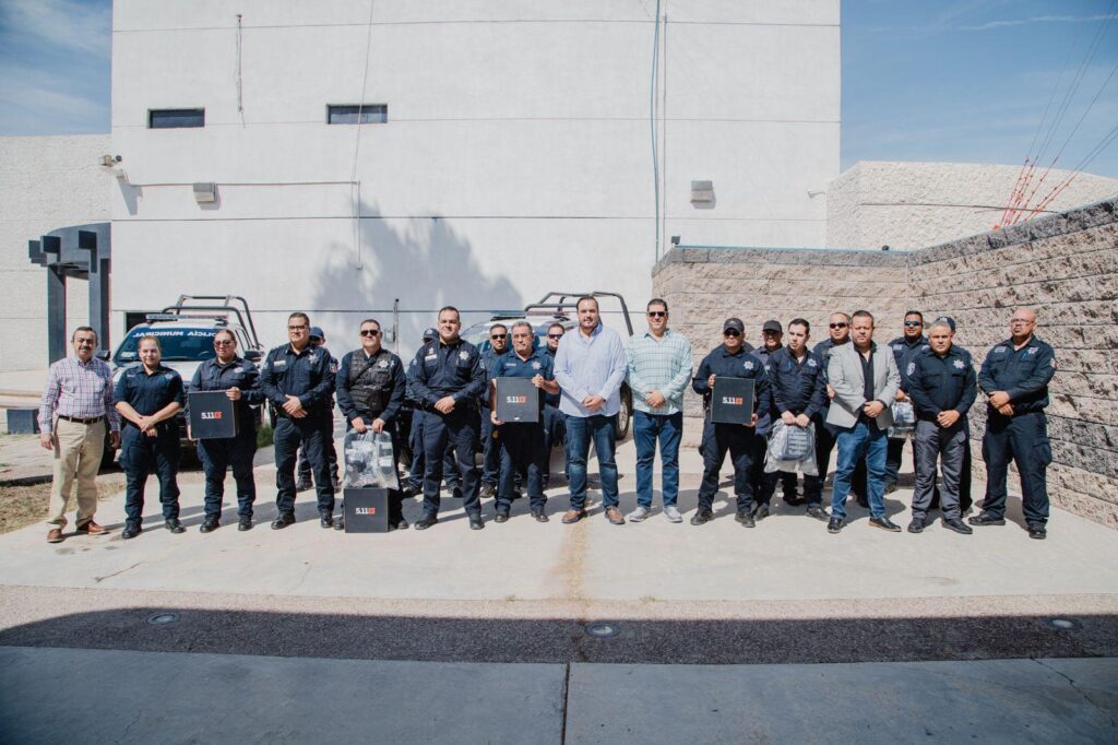 Con el objetivo de dignificar y reforzar el trabajo que realizan las y los elementos de la Dirección de Seguridad Pública y Vialidad Municipal, se realizó la entrega oficial de uniformes y equipamiento táctico, gestionado con el apoyo del Gobierno del Estado de Chihuahua.