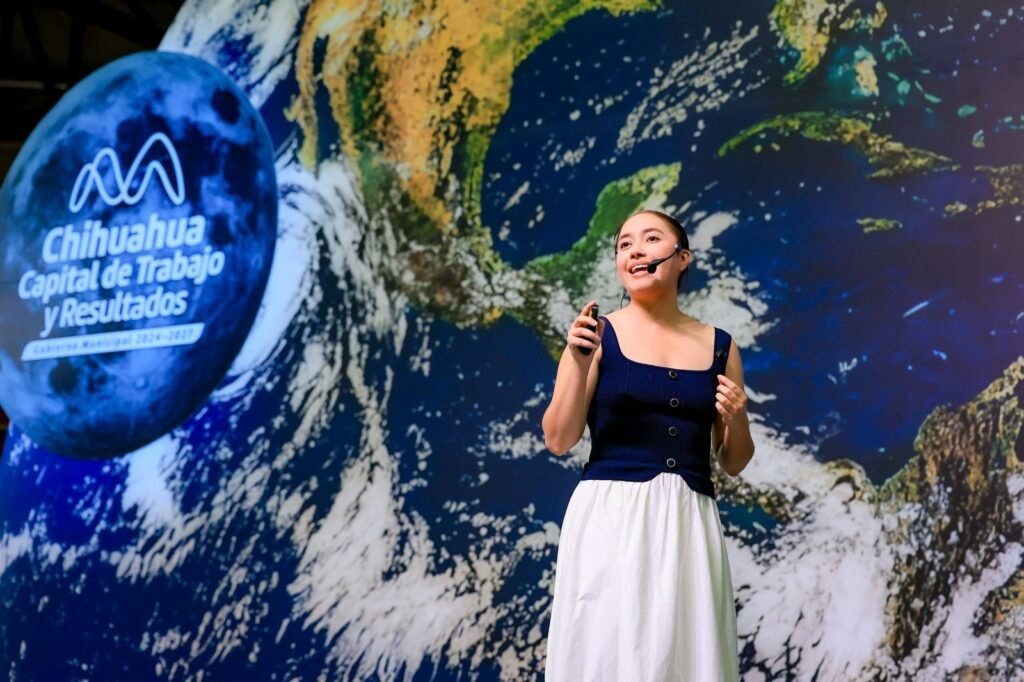 El alcalde Marco Bonilla destacó la trayectoria de la astronauta mexicana Katya Echazarreta resaltando su paso por la NASA y su histórico viaje al espacio, lo que la convierte en un orgullo nacional y en una figura que abre oportunidades para otras personas. “La doctora Katya Echazarreta es un ejemplo de cómo, con liderazgo, se puede abrir camino”, expresó Bonilla durante la conferencia “Espacio Sin Límites” impartida en el gimnasio Rodrigo M. Quevedo en la ciudad de Chihuahua ante cientos de estudiantes de nivel medio superior y superior.