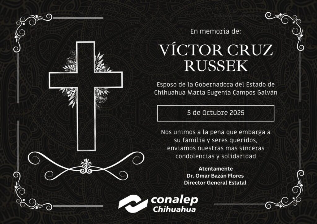 Sentimos la pérdida de Víctor Cruz Russek esposo de nuestra Gobernadora Constitucional Maru Campos Galván, deseamos pronta resignación a sus familiares y seres queridos.