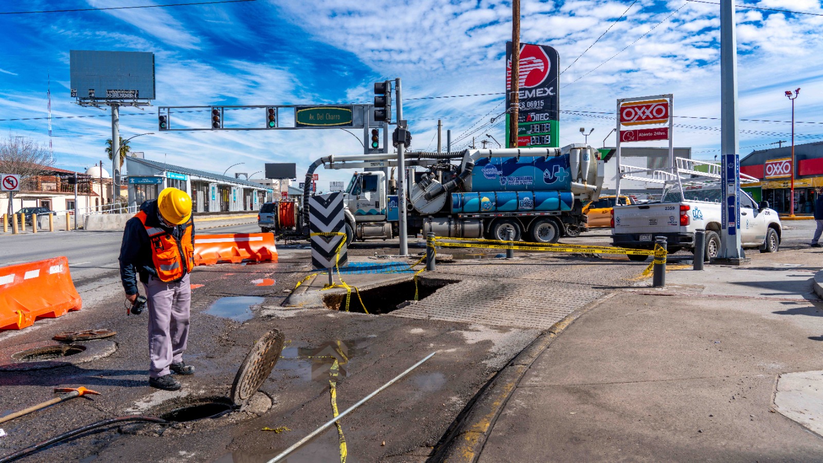 La Junta de Agua y Saneamiento de Juárez agradece la paciencia y comprensión de la ciudadanía y hace un llamado a reportar cualquier hundimiento o condición de riesgo al 073, especialmente en trayectos hacia centros de trabajo o en zonas cercanas a los hogares, para brindar una atención oportuna.