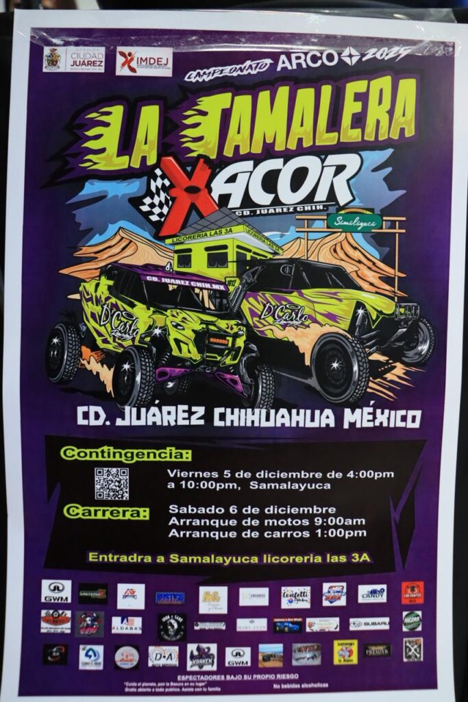 La contingencia se realizará el viernes 5 de diciembre de 4:00 la tarde a 10:00 de la noche en la plaza principal de Samalayuca, donde los aficionados podrán convivir con los pilotos y tomarse fotos con los autos y disfrutar de buen ambiente previo a la competencia.