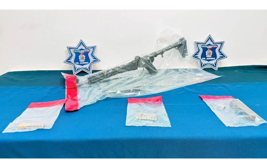 Al arribar al lugar señalado, los policías localizaron a cuatro personas que coincidían con las características proporcionadas en la denuncia, en las calles Toronja Roja y Eduwiges Rey de Quezada, observando que uno de ellos se encontraba armado.Por tal motivo los agentes procedieron a abordarlos y le aseguraron a Uriel Alejandro R. C. de 21 años, un fusil de asalto calibre 9 milímetros, con 13 cartuchos útiles.