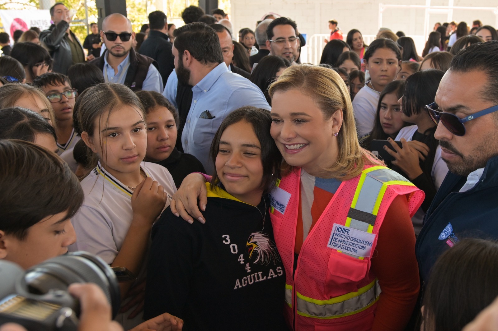 La gobernadora Maru Campos arrancó en la Escuela Secundaria 3044 de la ciudad de Chihuahua el Programa Juntos Construimos, con el que se mejorará la infraestructura de planteles de Educación Básica, en beneficio de 13 mil 989 estudiantes.