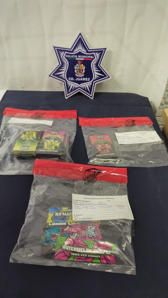 Motivo por el cual fueron abordados por protocolos de seguridad y al realizarles una inspección preventiva les localizaron entres sus pertenencias cinco “vapeadores” cargados con marihuana líquida y cuatro paquetes de gomitas elaboradas con derivados de cannabis, procediendo con su detención.