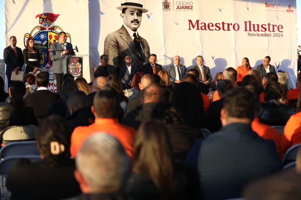 El evento se llevó a cabo en el monumento al Maestro Ilustre, ubicado en avenida Heroico Colegio Militar y Plutarco Elías Calles y fue amenizado por la Banda Municipal, además se contó con la colaboración de la escolta de la Secundaría Técnica 80, así como la Rondalla y banda de guerra de la Sección 8 del SNTE.