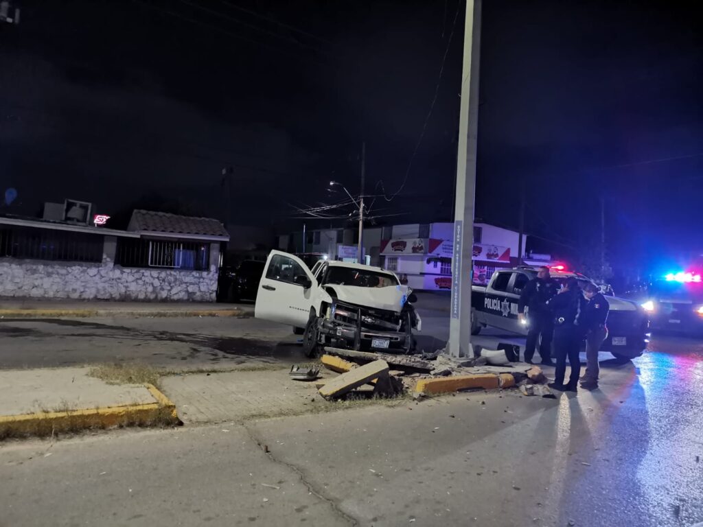 Se registró un choque en el cruce de la avenida Manuel J. Clouthier y calle Saguaro. En el lugar, el conductor de una pick up Chevrolet Silverado, perdió el control y chocó contra un poste con cámaras de vigilancia y posteriormente huyó a pie.
