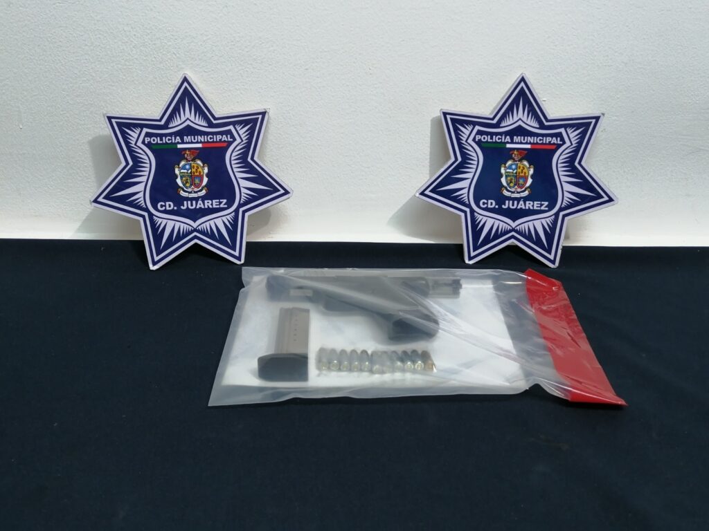 Motivo por el cual le marcaron el alto a los tripulantes por protocolos de seguridad en el cruce de las calles Arquitectos y Arquitecto José Bonomi, en donde al realizarles una inspección preventiva se les localizó en medio de los asientos un arma de fuego calibre 9 milímetros, con un cargador abastecido con once cartuchos útiles, razón por la cual fueron detenidos.