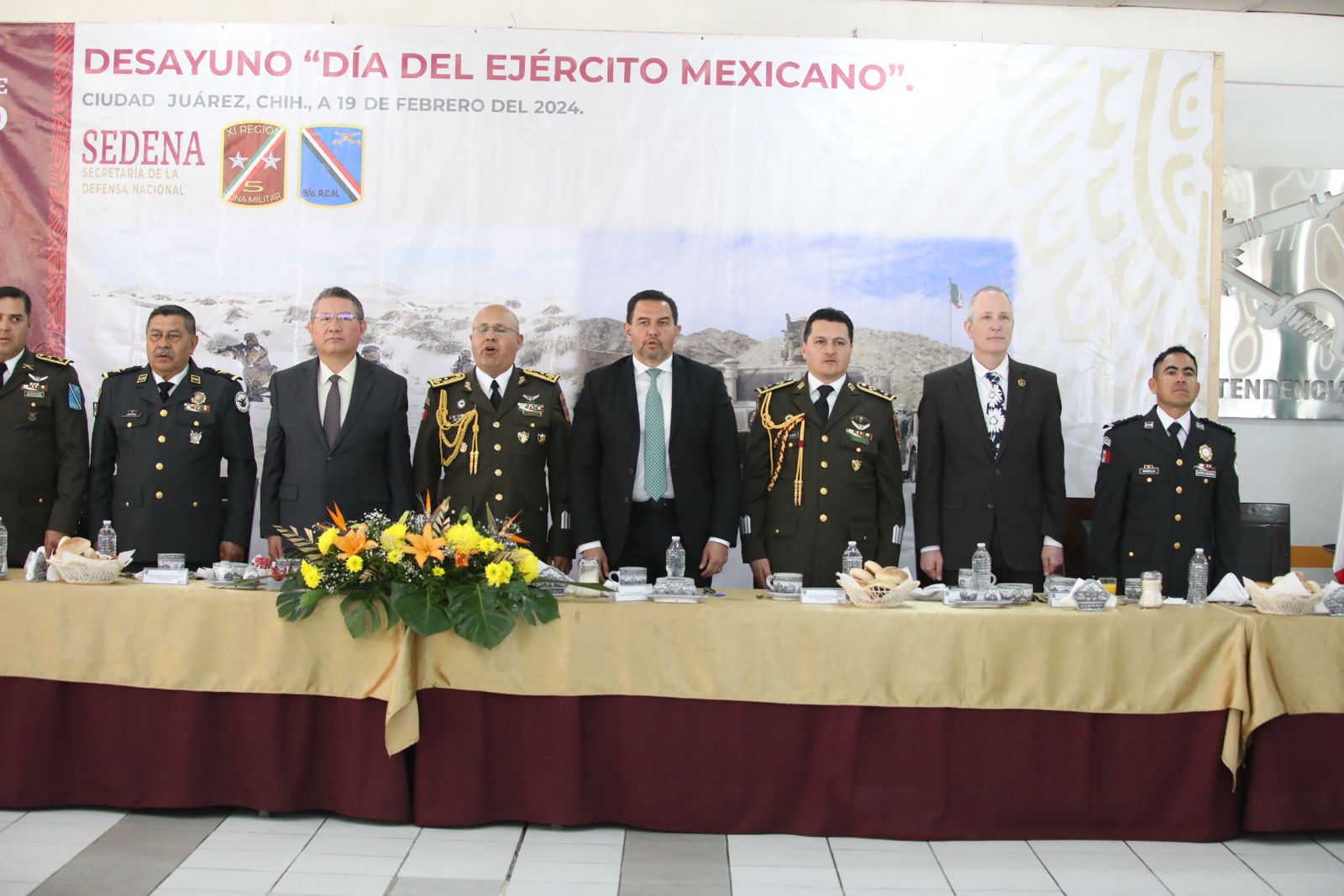 Como parte de la celebración por el Día del Ejército Mexicano, los militares disfrutaron de un desayuno, escucharon la Plegaria del Soldado, cantaron el Himno Nacional y se llevó a cabo una rifa para los elementos del Noveno Regimiento de Caballería Motorizado.