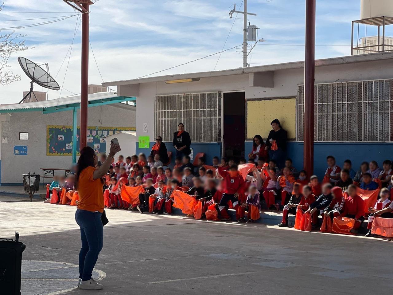En el marco del Día Naranja, que se conmemora el 25 de cada mes, para prevenir y erradicar la violencia contra niñas y mujeres, la Secretaría de Seguridad Pública del Estado (SSPE), se sumó a esta iniciativa con una jornada de concientización en escuelas de nivel básico en Ciudad Juárez.
