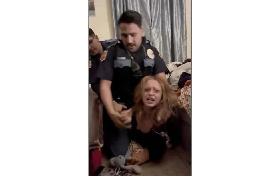 Según la declaración jurada, los oficiales Tavera y Gallardo hicieron contacto con Hufford dentro de la vivienda; sin embargo, el documento no menciona que un agente la haya golpeado, pese a que ese momento quedó registrado en un video que comenzó a circular en redes sociales el 3 de abril.Las imágenes, difundidas por una cuenta local en Instagram, muestran parte del forcejeo entre Hufford y varios oficiales dentro del domicilio. En el video, la mujer aparenta resistirse mientras los agentes intentan someterla. Durante el altercado, Hufford y los oficiales caen al suelo, donde al menos dos agentes se colocan sobre ella.