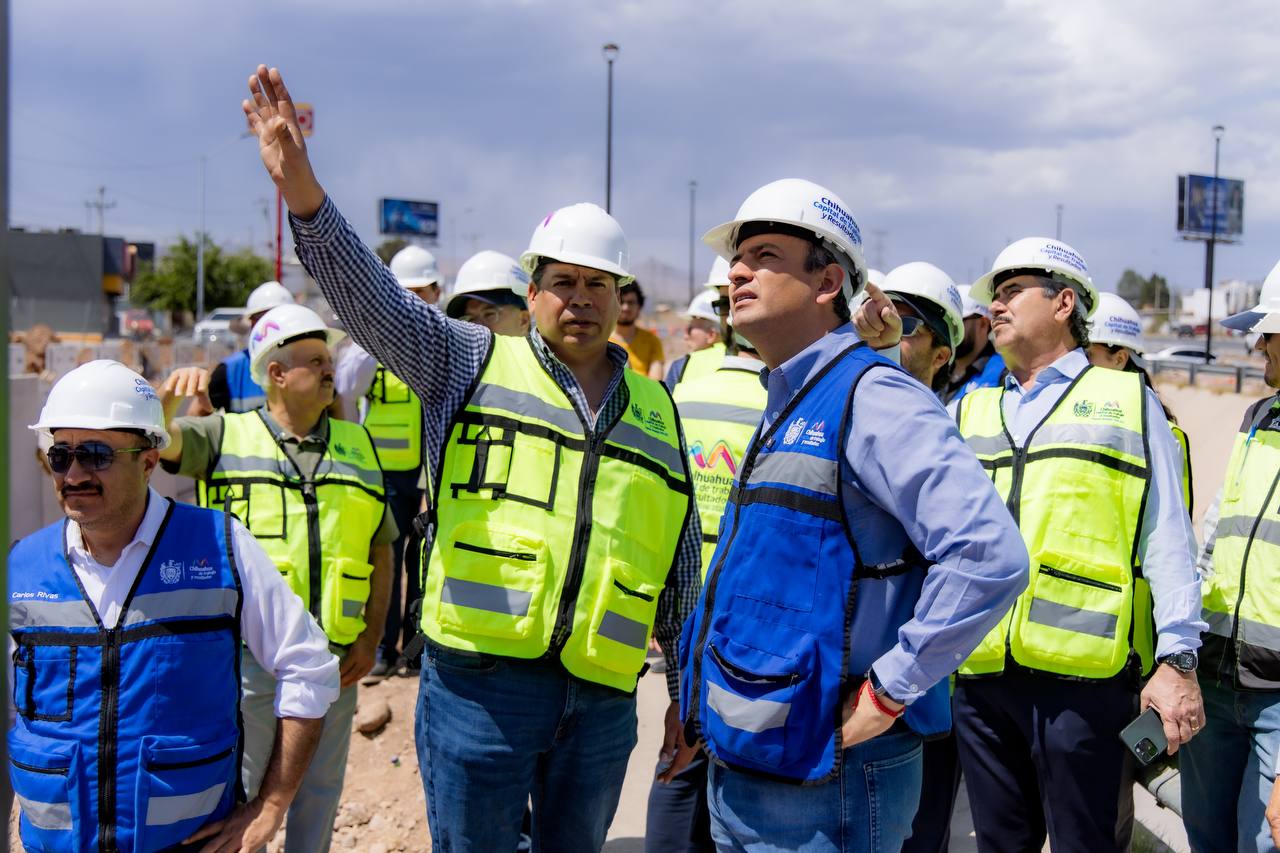 H. Ciudad de Chihuahua, Chih., a 30 de marzo de 2026.– El alcalde Marco Bonilla realizó un recorrido de supervisión en dos de las tres obras viales que actualmente construye el Gobierno Municipal, acompañado por integrantes de Desarrollo Económico del Estado de Chihuahua (DESEC), a quienes se les informó sobre los avances y el desarrollo de los trabajos.