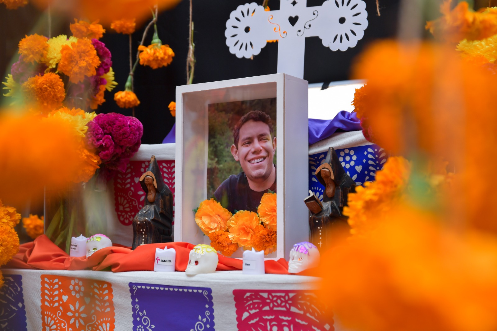 1 de noviembre del 2023.- El aroma de cempasúchil se apoderó del Centro Histórico de la ciudad de Chihuahua con la inauguración de la exposición de Altares de Muertos al interior del Patio del Palacio de Gobierno.