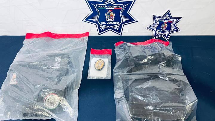 Para acreditar que pertenecía a una corporación policiaca, el sujeto mostró una placa metálica en color dorado con la leyenda “Policía Judicial” del estado de Chihuahua.