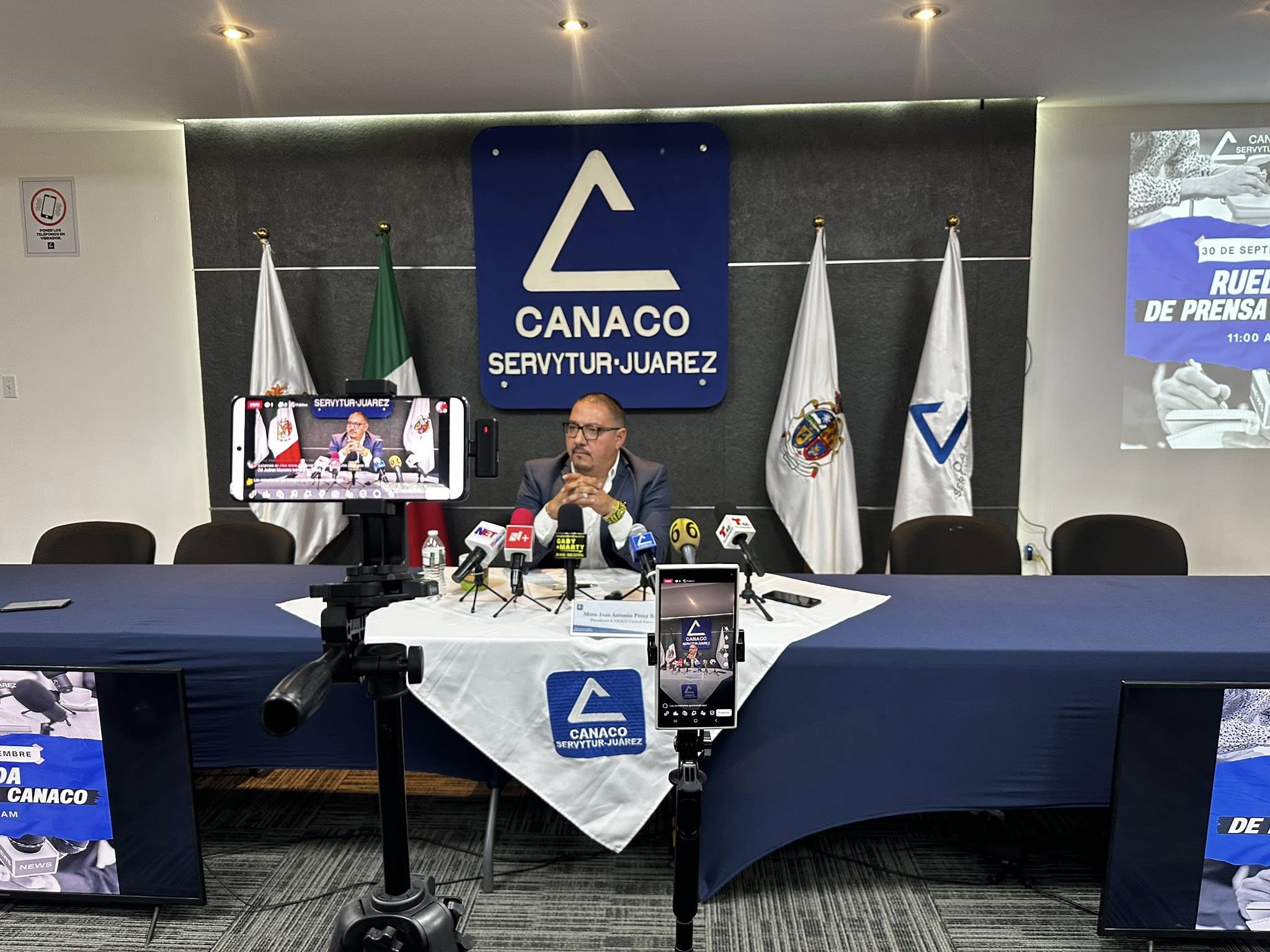 Conferencia de prensa, el presidente de la Cámara Nacional de Comercio (Canaco) en Ciudad Juárez, Iván Pérez, planteó la necesidad…