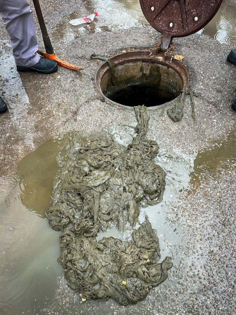 Durante las maniobras, se detectaron taponamientos en la tubería, ocasionados principalmente por la acumulación de grasa, papel higiénico, toallas húmedas y productos de higiene femenina, que fueron desechados en los sanitarios, este tipo de residuos provoca obstrucciones que ocasionan afectaciones al servicio y brotes de aguas negras.
