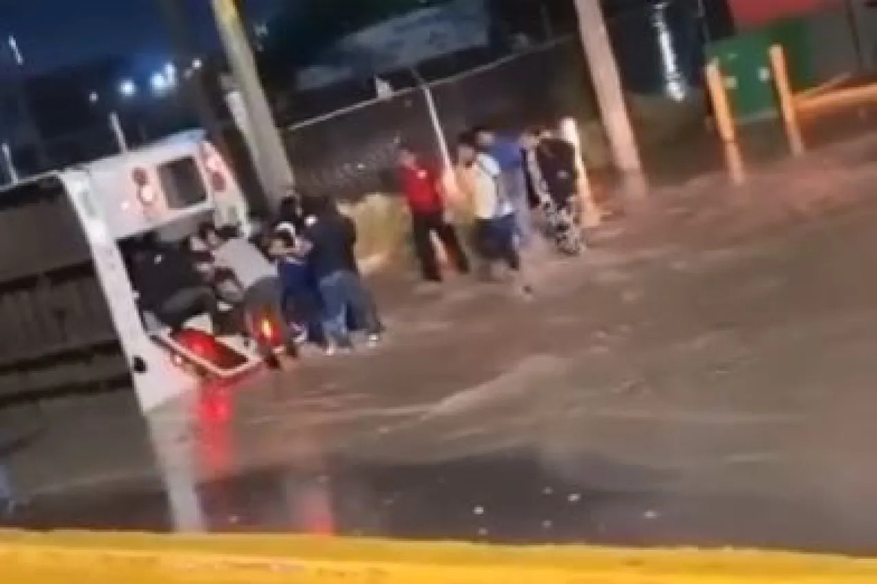 transporte que trasladaba trabajadores de una empresa maquiladora volcó durante la madrugada de este día, en medio de la fuerte tormenta registrada en la ciudad.
